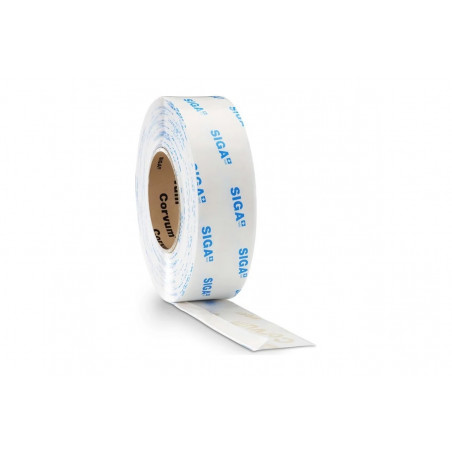 Le Corvum est une bande prépliée asymétriquement, avec un fort pouvoir adhésif, idéale pour raccorder la couche d’étanchéité à l’air au niveau des châssis de portes et fenêtres. Simple et rapide à poser grâce à ses bandes de séparation. Largeur 12/48 mm, longueur 25 m.