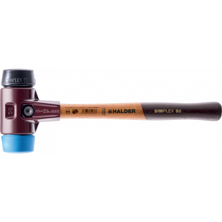 Maillet SIMPLEX avec combinaison d’embouts TPE souple (bleu, souple, sans marquage) / caoutchouc chargé (noir, moyennement dur, amortissant, sans odeur, résistant à l’usure).