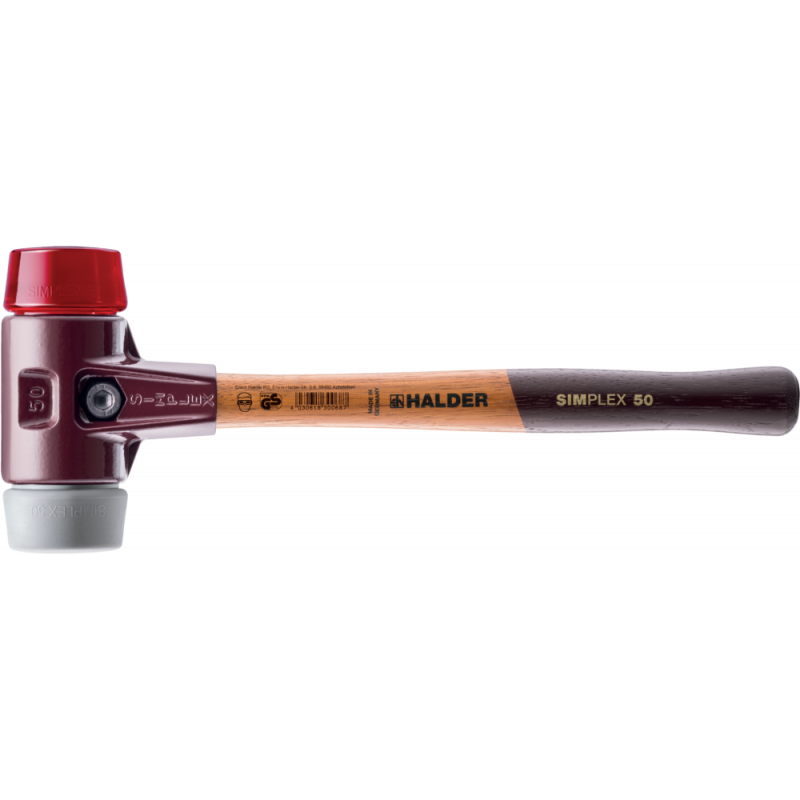 Maillet SIMPLEX avec combinaison d’embouts TPE moyen (gris, moyennement dur, sans marquage) /plastique (rouge, dur, résistant à l’huile et à la graisse).
