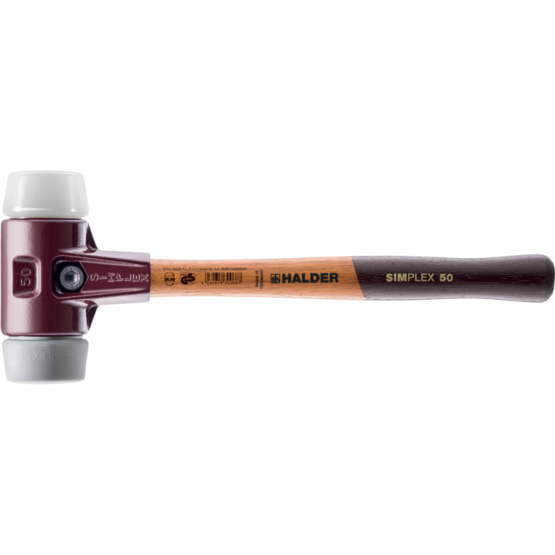 Maillet SIMPLEX avec combinaison d’embouts TPE moyen (gris, moyennement dur, sans marquage) / superplastique (blanc, moyennement dur, très résistant).