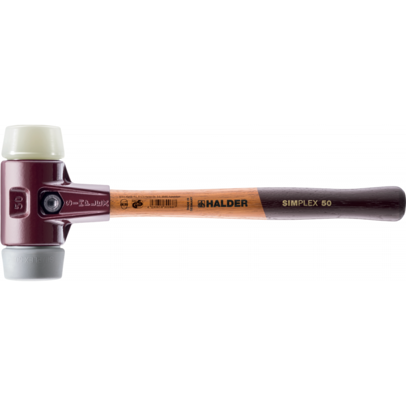 Maillet SIMPLEX avec combinaison d’embouts TPE moyen (gris, moyennement dur, sans marquage) /nylon (blanc, dur, très résistant à l'usure, pas d’écaillage même à des températures négatives, résistant à l’huile et à la graisse).