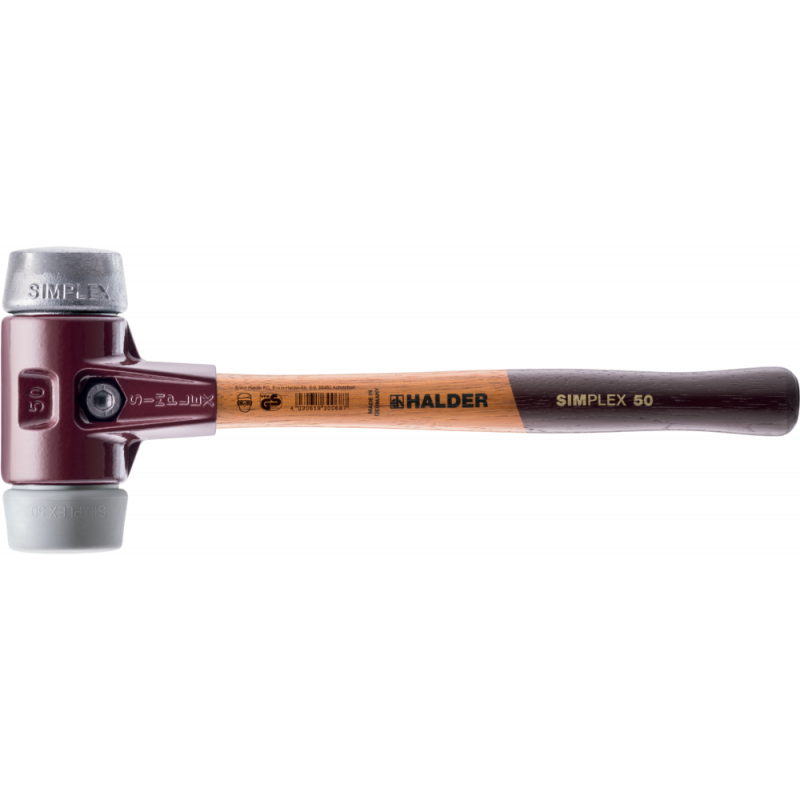 Maillet SIMPLEX avec combinaison d’embouts TPE moyen (gris, moyennement dur, sans marquage) / métal doux (argenté, dur, insensible à la chaleur)