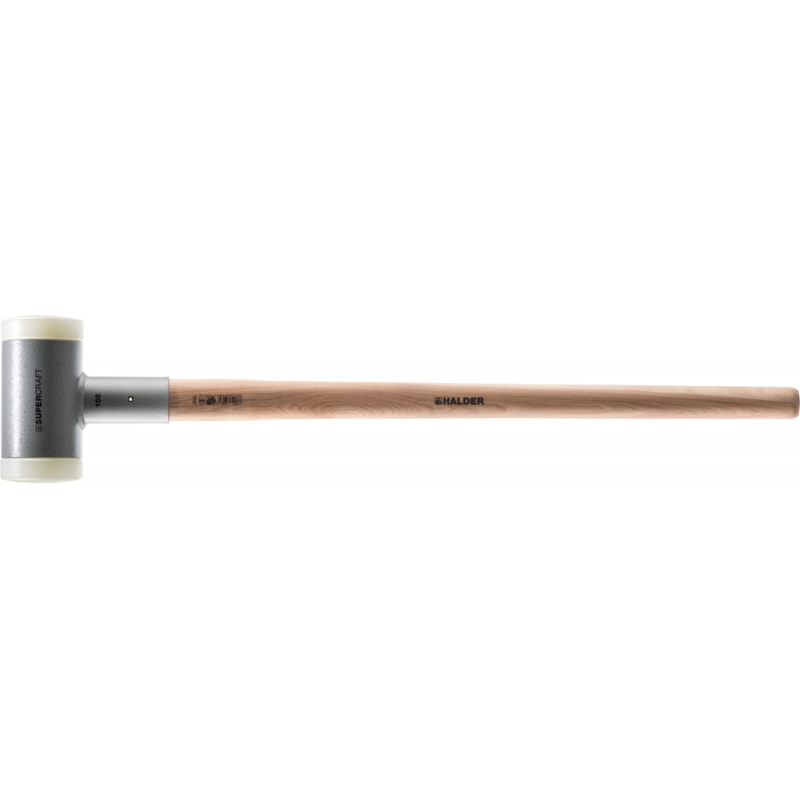 Le manche ergonomique, verni et très solide en hickory amortit les vibrations. La douille de protection du manche prévient les erreurs de frappe. Un coin en aluminium et une goupille assurent une liaison sûre entre le manche et la tête. Le revêtement de peinture en poudre résistant protège de la corrosion. Le manche et les embouts sont interchangeables.