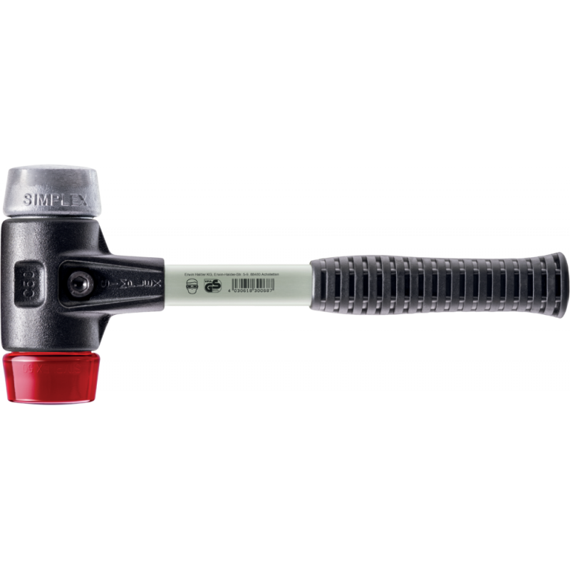 Maillet SIMPLEX avec combinaison d’embouts plastique (rouge, dur, résistant à l’huile et à la graisse) / métal doux (argenté, dur, insensible à la chaleur)