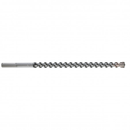 Plaquettes carbure à affûtage breveté. Perçage plus agressif, meilleure capacité d’absorption des chocs sur les fers, vibrations réduites. Durée de vie largement accrue., Géométrie novatrice des taillants à 4 x 90°° . Supprime le grippage dans les fers d’armature., Point de centrage avec 130 ° point d'angle pour une meilleure précision de percement., Taillants secondaires surdimensionnés et incurvés. Pour accélérer les perçages., Tête plus courte. Pour accélérer l’évacuation des débris = moins de frottements, moins d’échauffements, moins d’usure, moins de vibrations., Taillants carbure renforcés et surdimensionnés à la géométrie optimisée à parir du ø >Ø 32 mm pour des perçages encore plus rapides., Témoins d’usure latéraux. C’est la garantie de la précision et l’exactitude du Ø percé pour les ancrages homologués., Flûte renforcée brevetée. Moyeu central renforcé pour réduire les vibrations, supprimer les risques de ruptures et une transmission intégrale de la force de frappe., Goujures plus larges. Pour une évacuation plus rapide des débris = moins d’usure, moins d’échauffements, vitesse de perçage plus rapide., Vibrations nettement réduites. Pour le confort et la santé du professionnel et une usure moindre de l’outil., Le traitement spécial de la surface. Le grenaillage permet la création d'une surface lisse et rend résistant à l'usure.