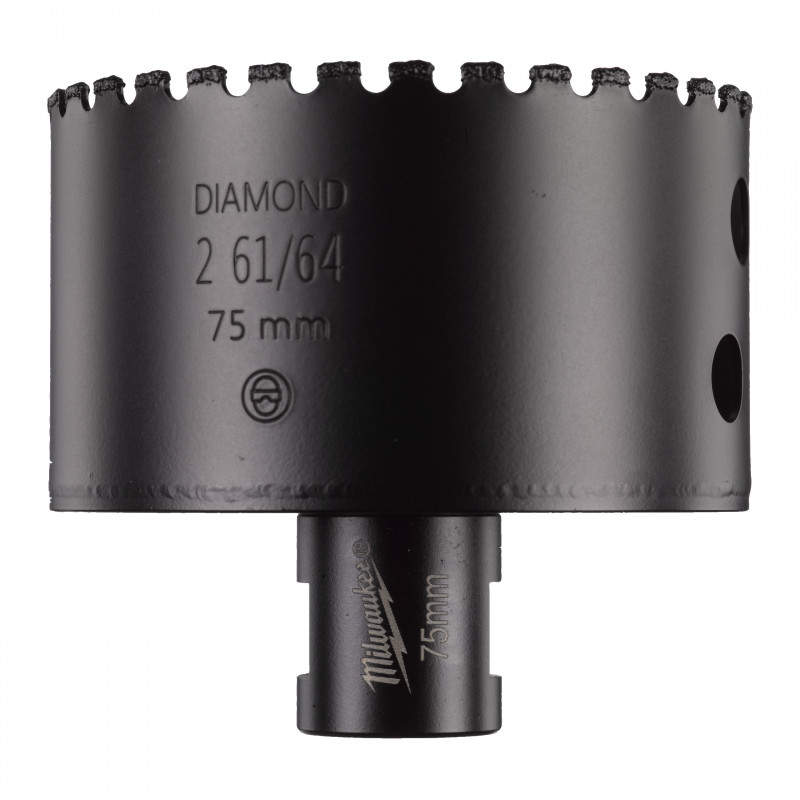 Les scies cloches à tête diamantés ont été spécialement développé pour les professionnels qui ont besoin de percer des matériaux extrêmement durs tels que la porcelaine /grès /carrière, la fonte ou la fibre de verre où il est de plus en plus difficile de travailler avec des forêts conventionnels. Ces forêts garantissent des performances excellentes et une durée de vie accrue même dans les matériaux les plus durs. - Mèches sèches: Ces forêts diamant ne nécessitent pas l'utilisation d'eau pour le refroidissement. - Filetage M14: A fixer directement sur une meuleuse d'angle. - Trous propres: Perce des trous propres et précis sans aucune égratignure sur la paroi. - Pour une meilleure durée de vie, nous utilisons des diamants de haute qualité pour des coupes rapides, des matrices de soudures brasées supérieures et plus durables - Durabilité: Pour assurer une longue durée de vie tout en garantissant une coupe rapide, nous utilisons un diamant de haute qualité associé à une soudure supérieure sur un corps en alliage résistant qui ne se plie pas et ne se déforme pas. - Éjection facile des bouchons : Fentes d'éjection de bouchon sur les plus grandes tailles pour un meilleur effet levier lors du retrait de matériaux. - Domaines d'application - Tuiles céramique - tous types de matériaux, durs et mous: Porcelaine / Grès / Carrière / Pierre Artificielle / Aggloméré - Fonte - Fibre de verre / GRP - Verre en plastique renforcé/ Perspex - Utilisation - 1- Les scies cloches et forêt DIAMOND MAX™ s’adaptent directement sur la meuleuse d'angle grâce à son filetage M14. Bloquez l'arbre de la meuleuse, vissez directement la cloche dessus et serrez avec une clé. Pour une utilisation avec une polisseuse, utilisez l'adaptateur 4932472090.