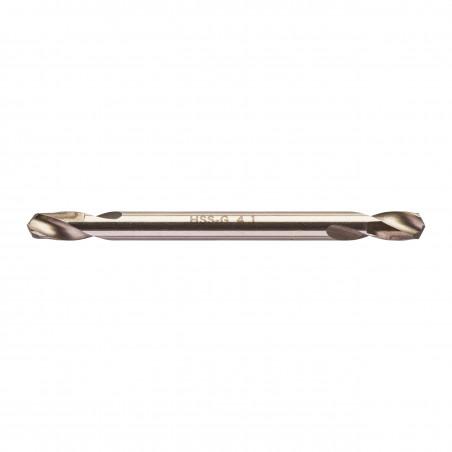 Acier HSS haute qualité., Pointe DIN 1412 C. Angle de pointe 135°. Tolérance H8., Hélice type N avec angle classique 20 – 30°., Tranchant droit. Surface / Couleur: Argent poli., Point de partage pour un bon centrage., Les deux extrémités peuvent être utilisées., Supportent de grande pression de perçage grâce leur faible longueur., Excelente concentricité., Hélice type N polie pour moins de frottement et une plus grande vitesse de perçage., Application : Convient pour le perçage dans l’acier, les métaux non ferreux et les plastiques., La plus adaptée pour faire des trous de rivet.