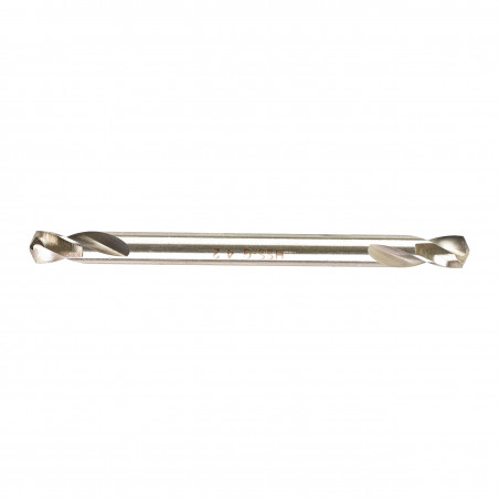 Acier HSS haute qualité., Pointe DIN 1412 C. Angle de pointe 135°. Tolérance H8., Hélice type N avec angle classique 20 – 30°., Tranchant droit. Surface / Couleur: Argent poli., Point de partage pour un bon centrage., Les deux extrémités peuvent être utilisées., Supportent de grande pression de perçage grâce leur faible longueur., Excelente concentricité., Hélice type N polie pour moins de frottement et une plus grande vitesse de perçage., Application : Convient pour le perçage dans l’acier, les métaux non ferreux et les plastiques., La plus adaptée pour faire des trous de rivet.