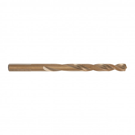 Forets métaux rectifiés HSS enrichi à 5 % de Cobalt selon norme DIN 338. Finition polie., Angle d’attaque des bords de coupe à 135° avec pointe auto centrage sans pointage., Spirale « type N » à coupe droite., Excellente résistance à la chaleur et à l’usure dans les aciers fortement alliés jusqu’à 1000 N/mm² comme les aciers ayant reçu un traitement thermique ou contre l'acide. Couleur : bronze., Convient pour le perçage d'aciers à haute teneur en alliages et de métaux ayant des résistances à la traction supérieures à 1000 N / mm² comme les aciers résistants à la chaleur et aux acides et l'acier inoxydable., Tige à 3 méplats de 5 mm de diamètre pour une meilleure adhérence et empêche le glissement du mandrin., Couleur : bronze