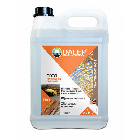 D’XYL Tous Usages est un produit « prêt à l’emploi » insecticide, fongicide et antitermites, pour le traitement préventif et curatif des bois de construction : charpentes, ossatures bois…
